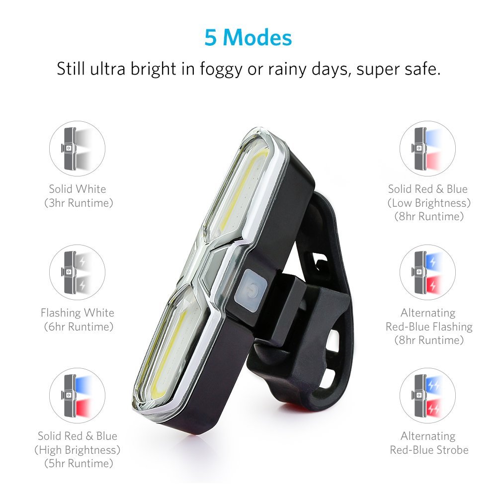 ThorFire Bike Light , 5 MODES ,USB Rechargeable & Waterproof for Cycling Safety