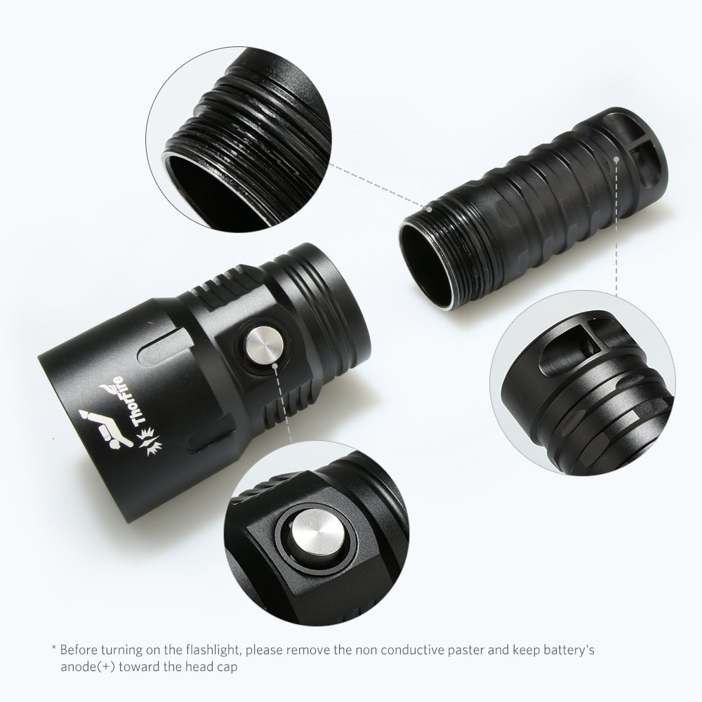 ThorFire TD26 Diving Flashlight with 18650 Battery and Charger, 1000 Lumen