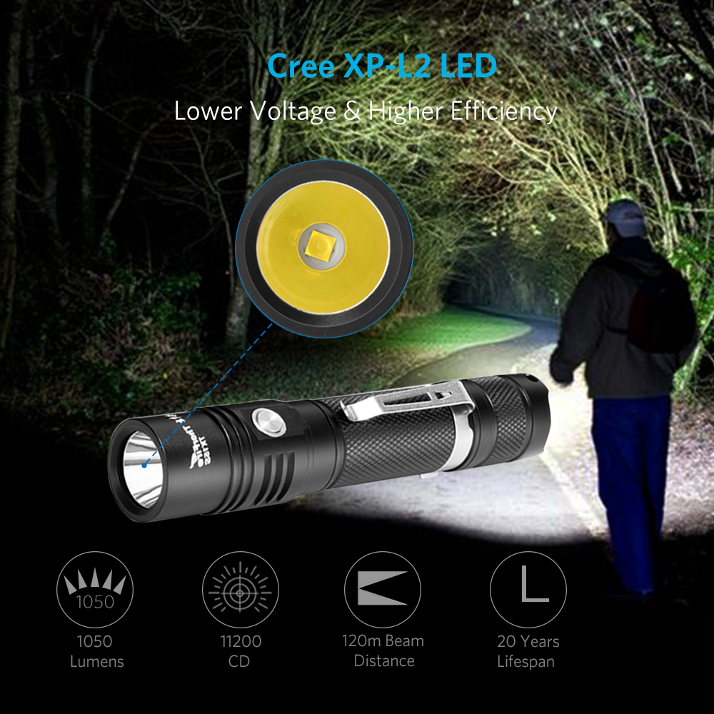 ThorFire TK15S Flashlight ,1050 lumen ,XPL2 Led ,With one 18650 Rechargeable Battery
